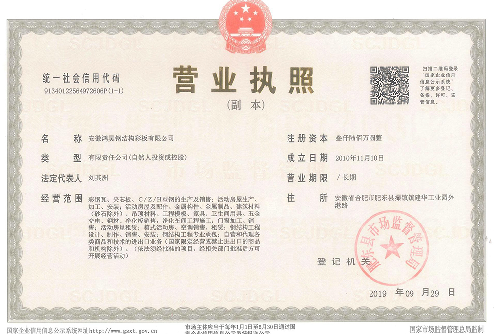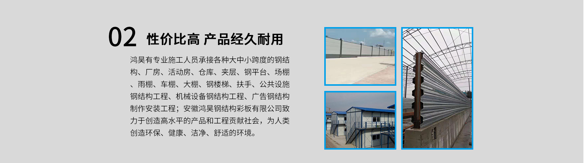 安徽鴻昊鋼結(jié)構(gòu)彩板有限公司總部位于“大湖名城、創(chuàng)新高地”的安徽省會(huì)合肥,注冊(cè)資金3600萬(wàn)元,具有專(zhuān)業(yè)施工安裝承包資質(zhì)。集鋼結(jié)構(gòu)、活動(dòng)房設(shè)計(jì)、研發(fā)、銷(xiāo)售、服務(wù)、施工為一體的綜合性企業(yè),本公司引進(jìn)全自動(dòng)彩鋼復(fù)合夾芯板生產(chǎn)流水線(xiàn)肆臺(tái)。以生產(chǎn)多種規(guī)格的彩鋼復(fù)合夾芯板、彩鋼瓦楞板符合JC684-1998標(biāo)準(zhǔn)、巖棉板、環(huán)保復(fù)合材料、H、C、Z型鋼等標(biāo)準(zhǔn)化機(jī)械多臺(tái),彩鋼壓型鋼板年產(chǎn)240多萬(wàn)米、年產(chǎn)型鋼8000噸、組合板房年產(chǎn)460多萬(wàn)平方米、復(fù)合板材年產(chǎn)量280多萬(wàn)米.